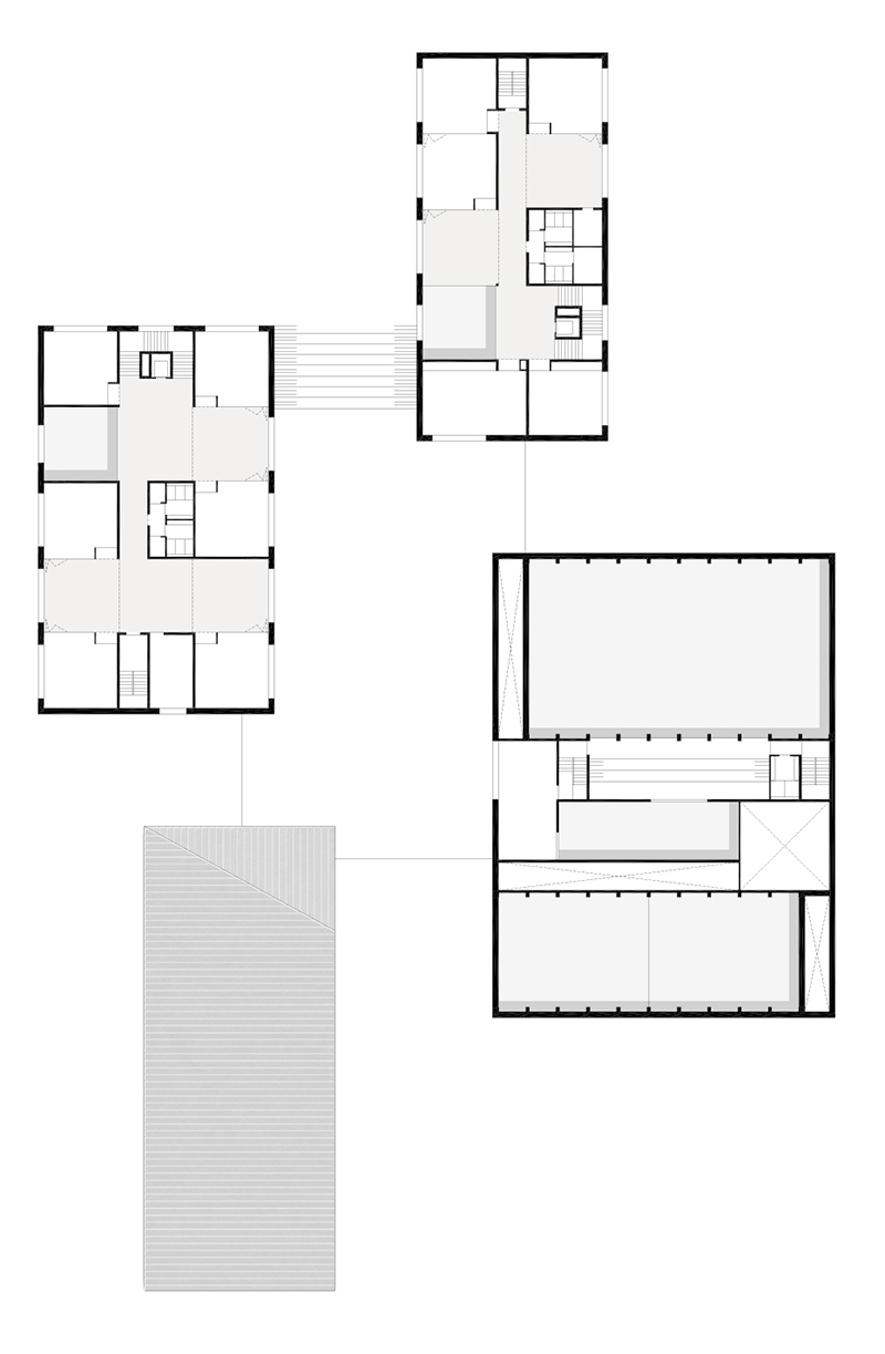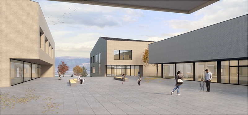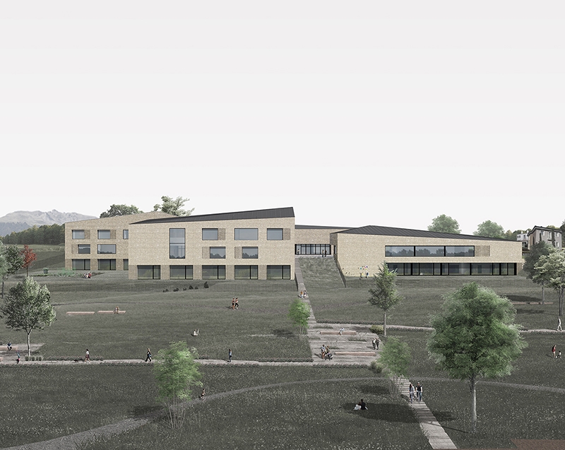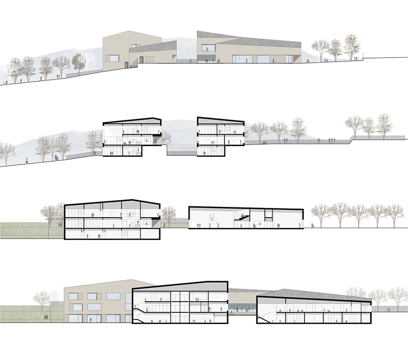 superficie/gross surface: 1 200m² (scuola secondaria di I grado); 1 420m² (scuola primaria); 960m² (scuola materna); 1 070m² (mensa-auditorium-palestra)