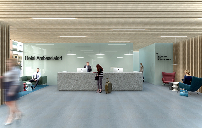 RISTRUTTURAZIONE DELLA HALL E DEGLI SPAZI COMUNI DELL’HOTEL AMBASCIATORI
