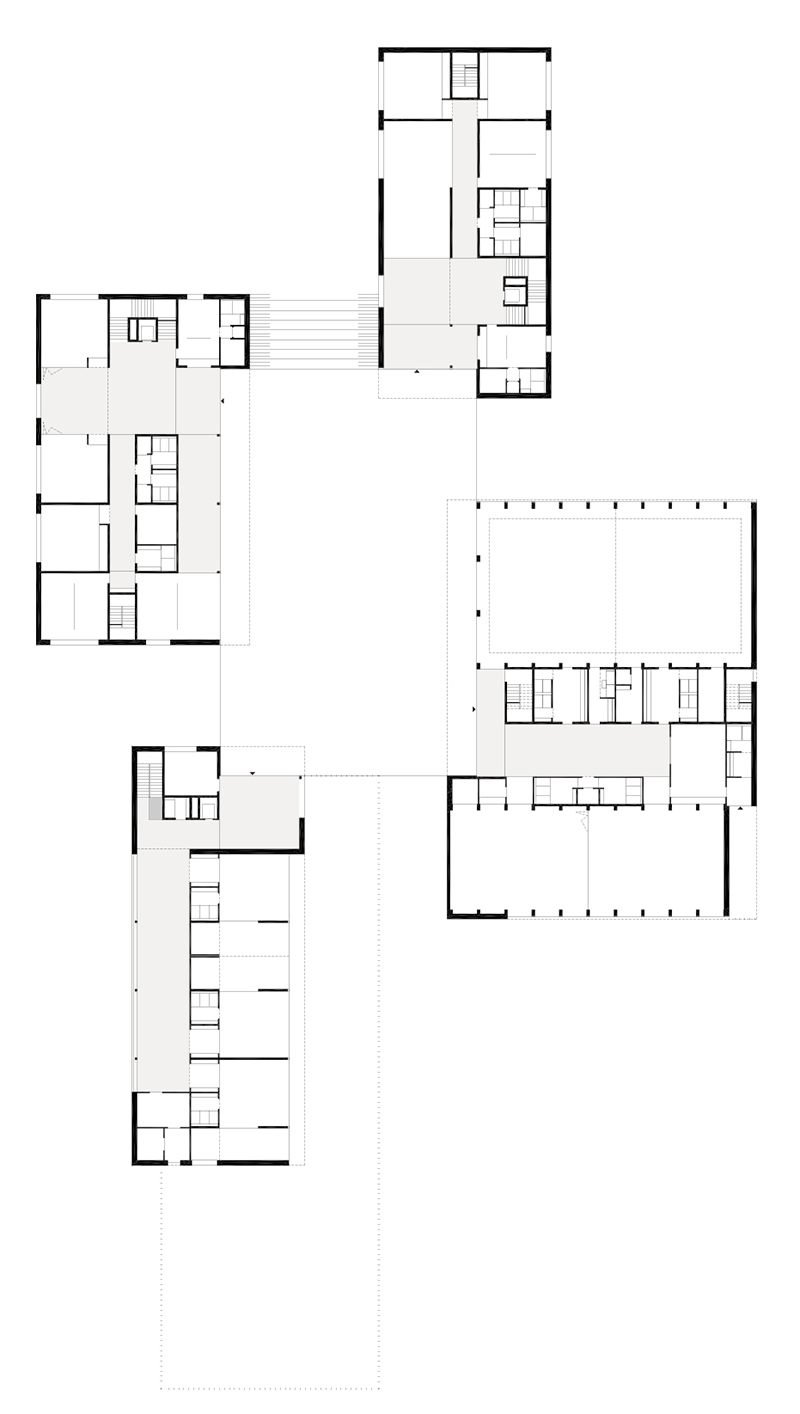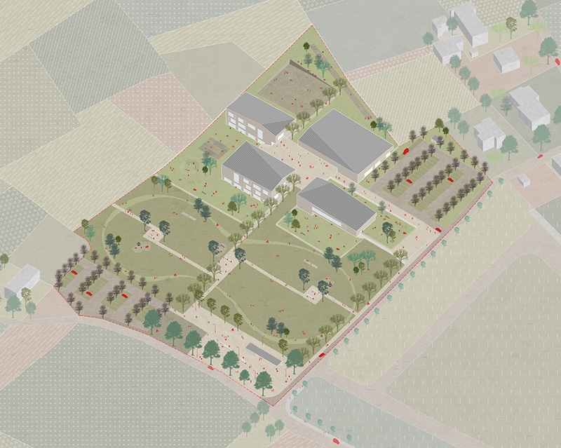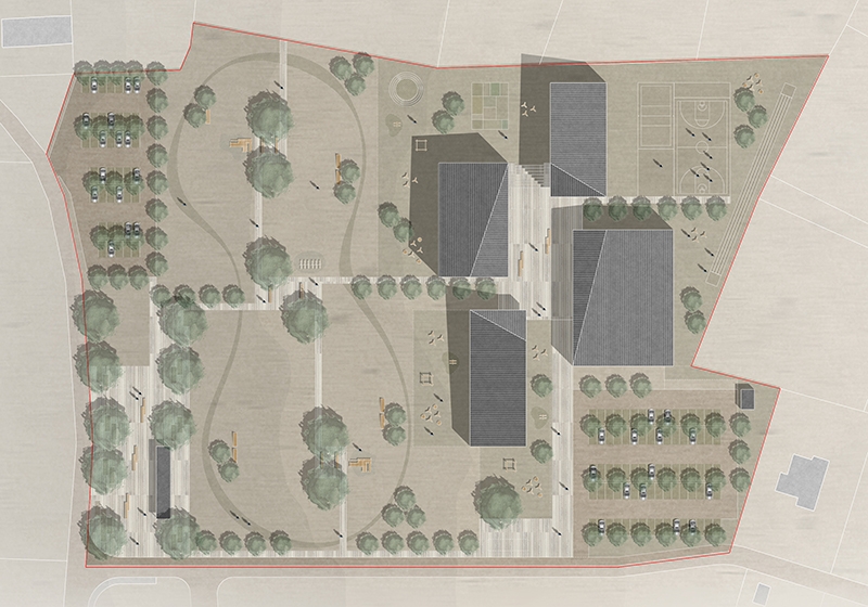superficie/gross surface: 1 200m² (scuola secondaria di I grado); 1 420m² (scuola primaria); 960m² (scuola materna); 1 070m² (mensa-auditorium-palestra)